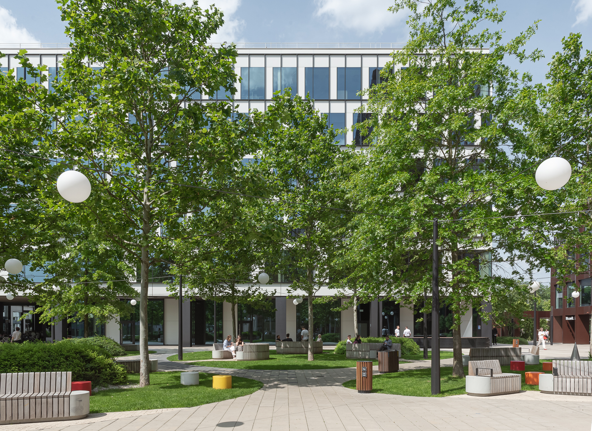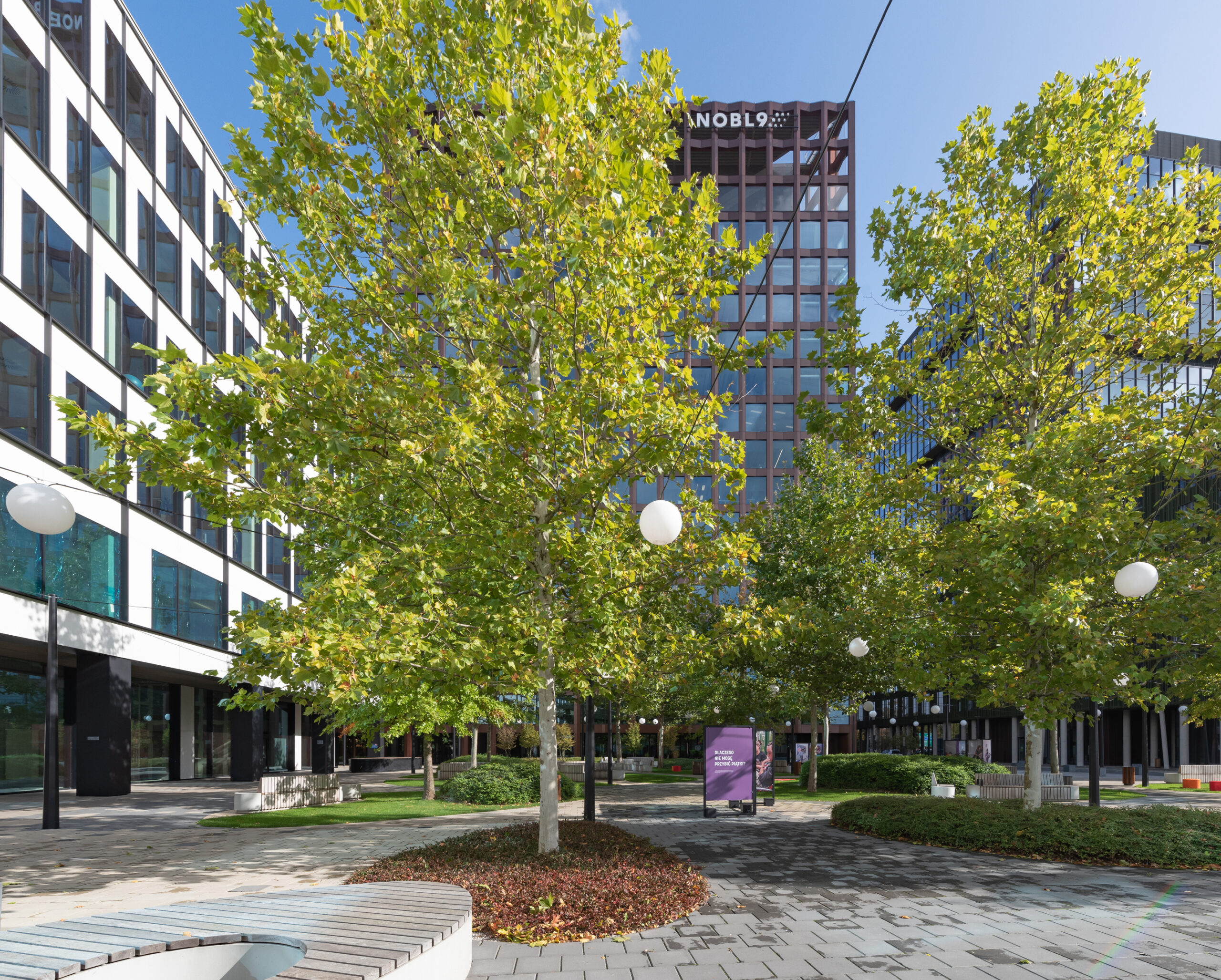 Poza tym zieleń pełni również funkcję wyciszającą od hałasu centrum miasta i okalających ruchliwych ulic oraz wytłumiającą podmuchy wiatru spowodowane szerokimi otwarciami kwartału.