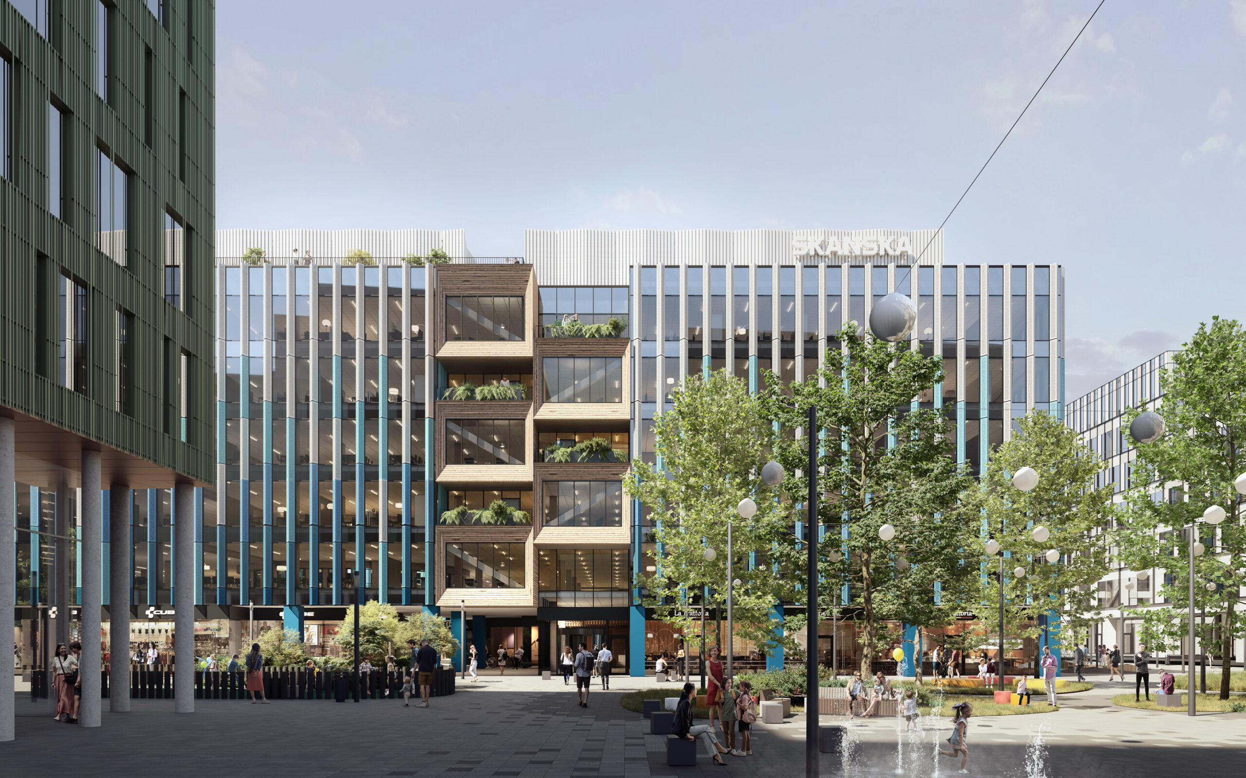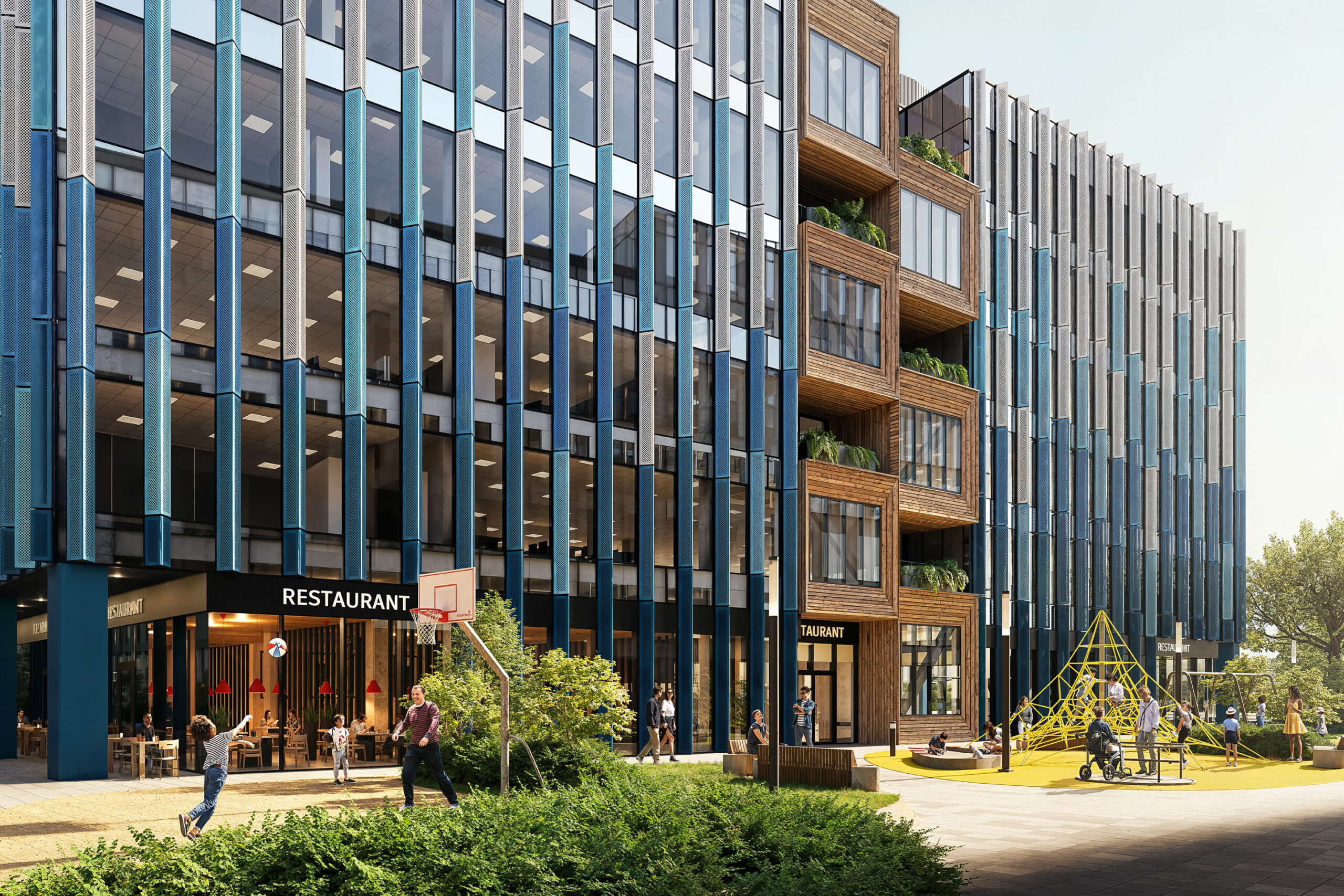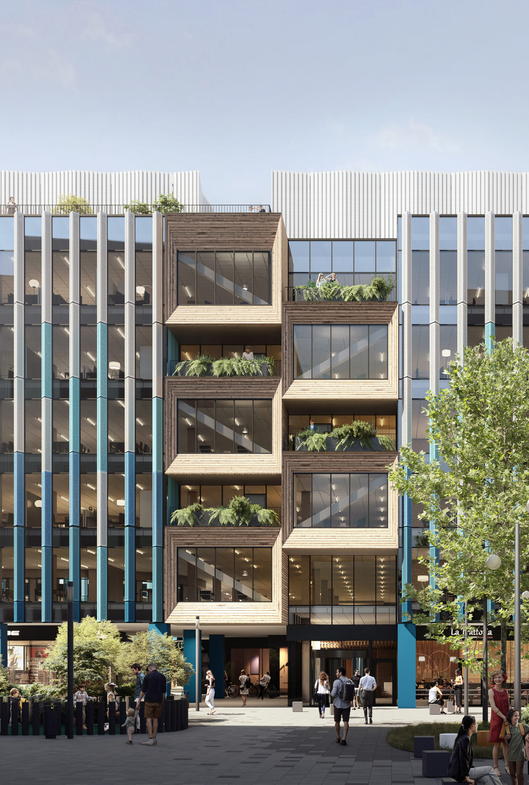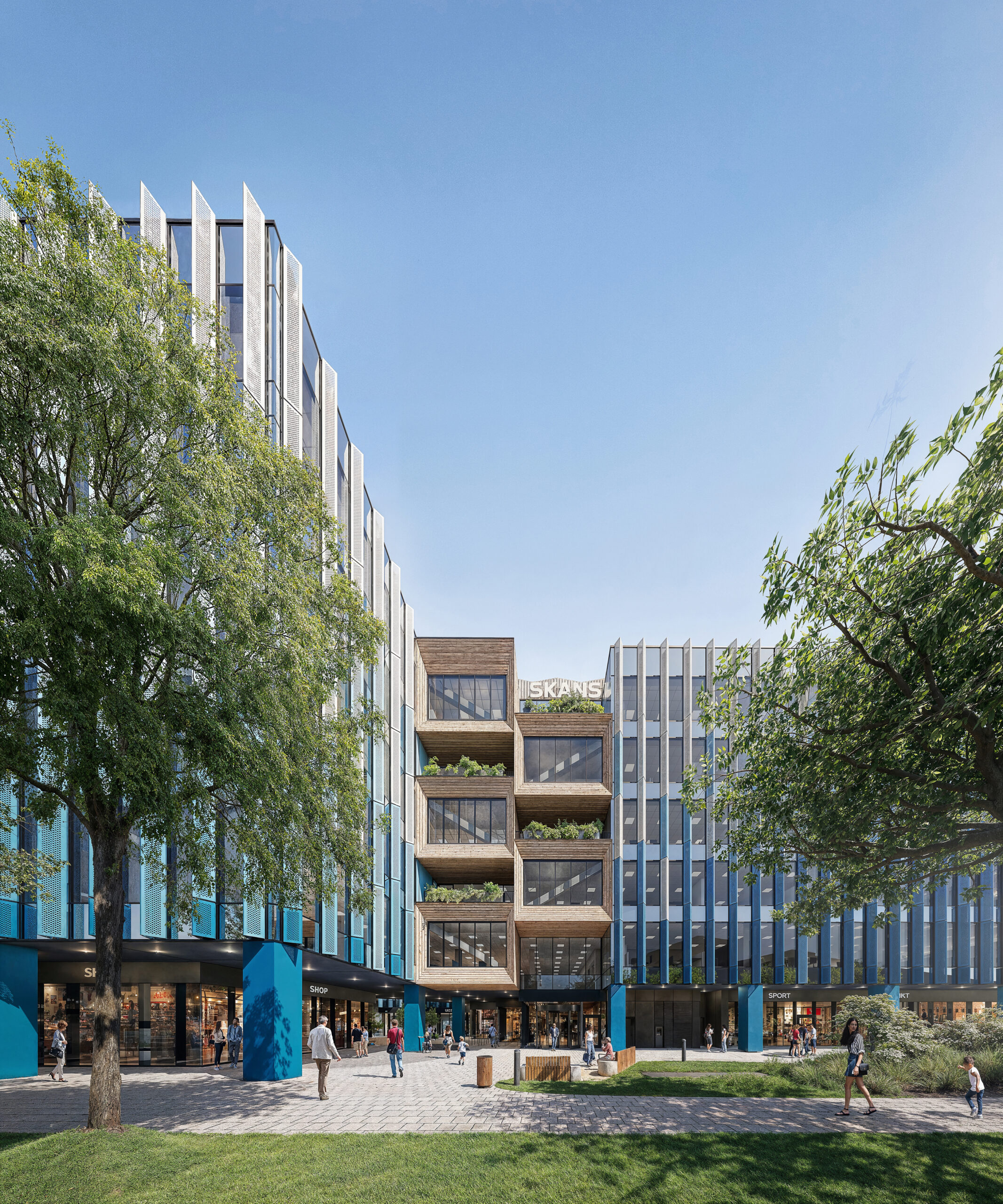Warto dodać, że charakterystyczne niebieskie „żyletki” zostaną wykonane z aluminiowej, perforowanej blachy. Będą chronić wnętrza przed słońcem, a jednocześnie ukryją otwierane fragmenty elewacji, umożliwiające naturalne przewietrzanie pomieszczeń bez użycia wentylacji i klimatyzacji mechanicznej.
